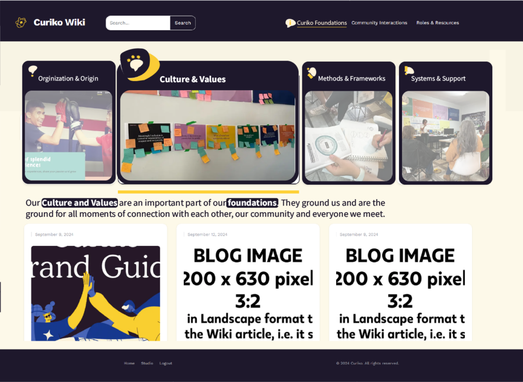 Curiko connects people with and without disabilities by curating community-led experiences and (peer) coaching via an online platform. In 2024 the Curiko team of curators and coaches scaled from Vancouver to other regions of British Columbia. This growth and transition to a mostly hybrid organization made it crucial to capture not only what they do, but also why and how, especially as they are a value-driven organization. To codify Curiko’s practices and processes I co-designed a Curiko Wiki, an internal knowledge base similar to Wikipedia, to inform both new and experienced team members.